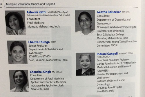 - Faculty at MOGS Pre-Conference Workshop on Multifetal Pregnancy – “Aneuploidy Assessment in Twins” – Jan 2015
