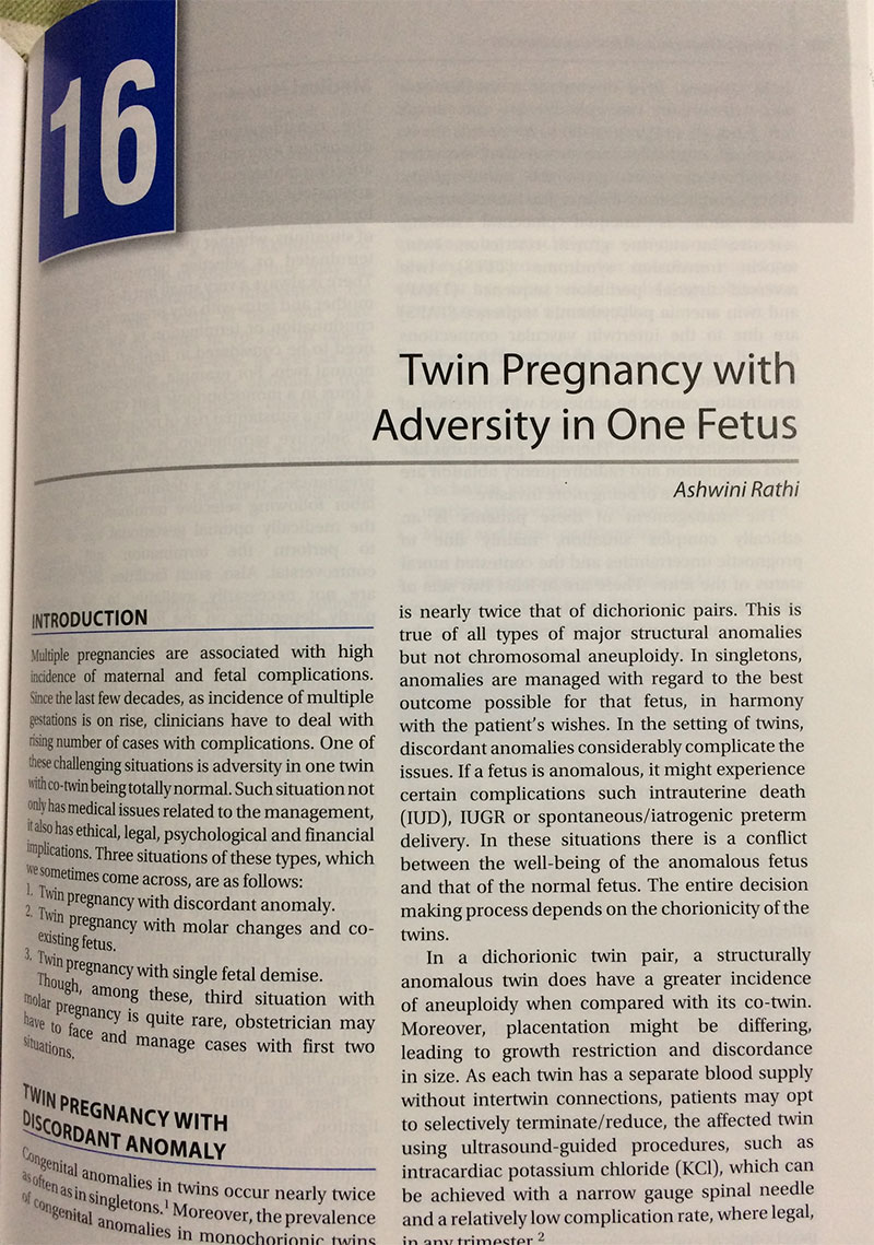 - Author of FOGSI Book Chapter – “Adversity in One Twin” – 2017