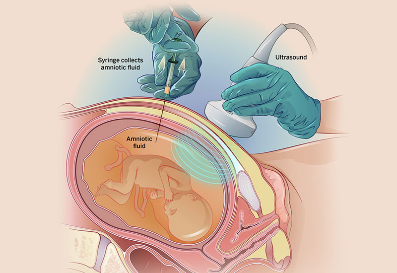 The procedure is carried out under strict ultrasound guidance to ensure safety. A thin sterile needle is inserted through the abdominal wall into the amniotic sac without touching the fetus or placenta, and a small amount of fluid is withdrawn. The procedure usually takes a few minutes and does not require hospitalization.